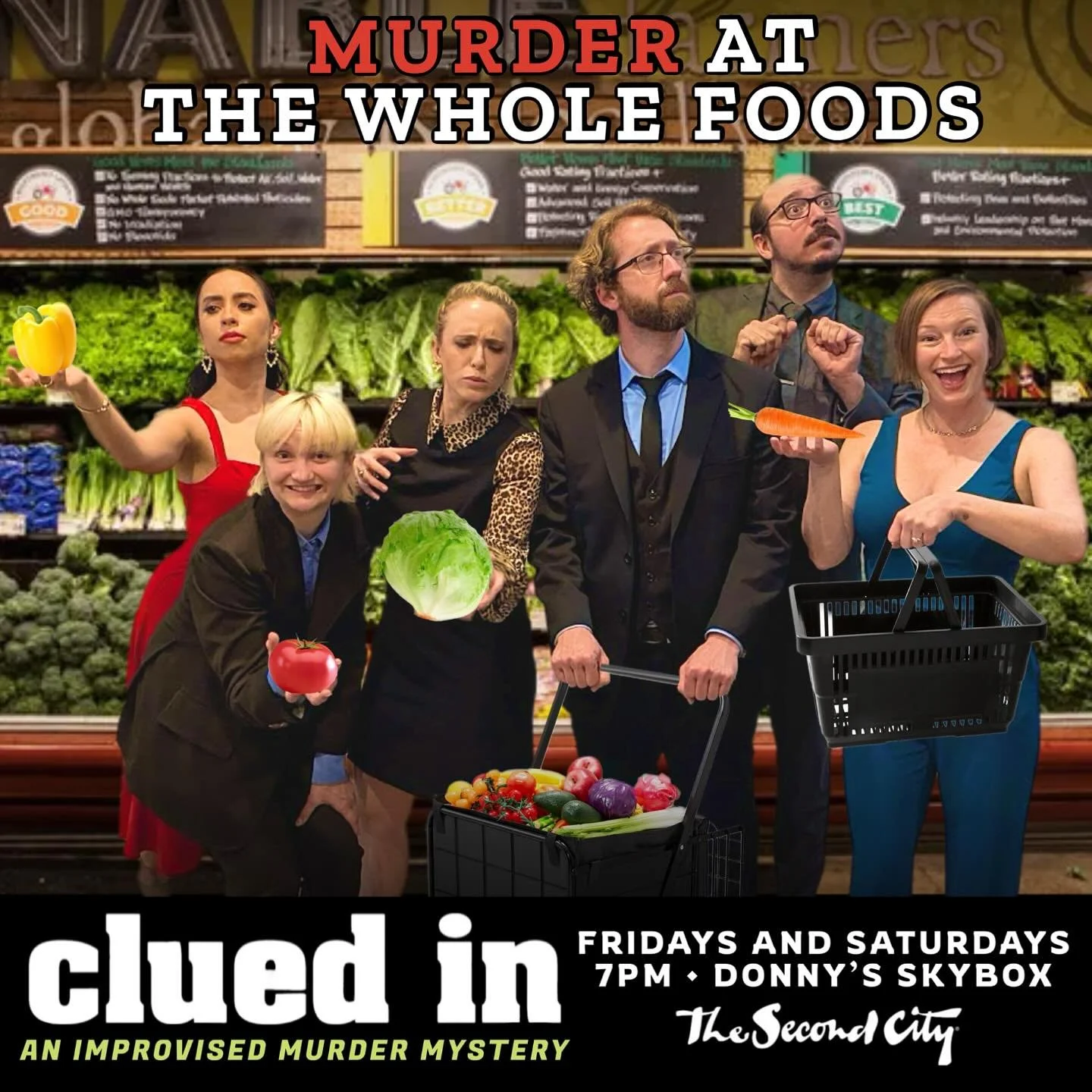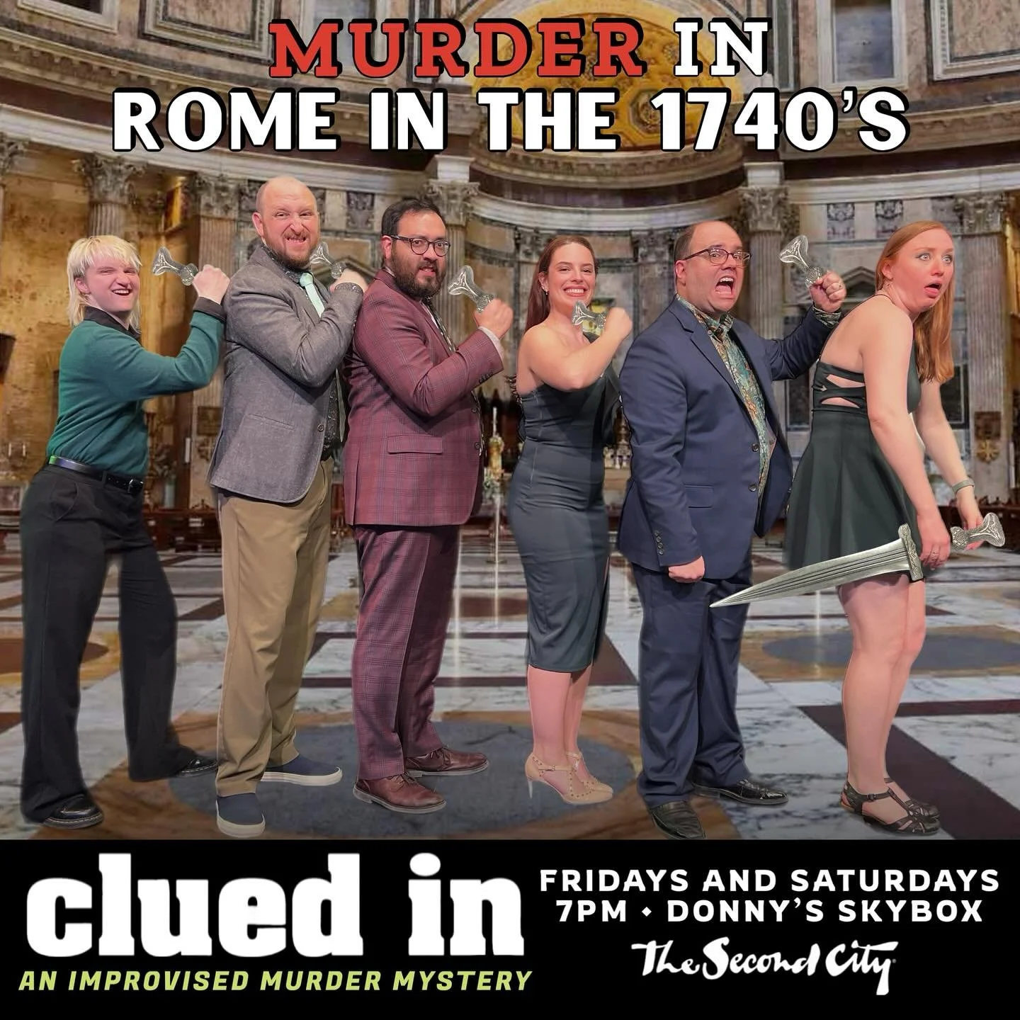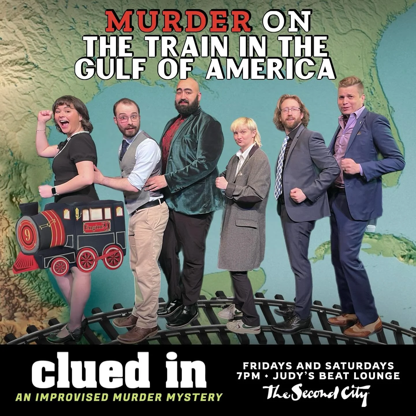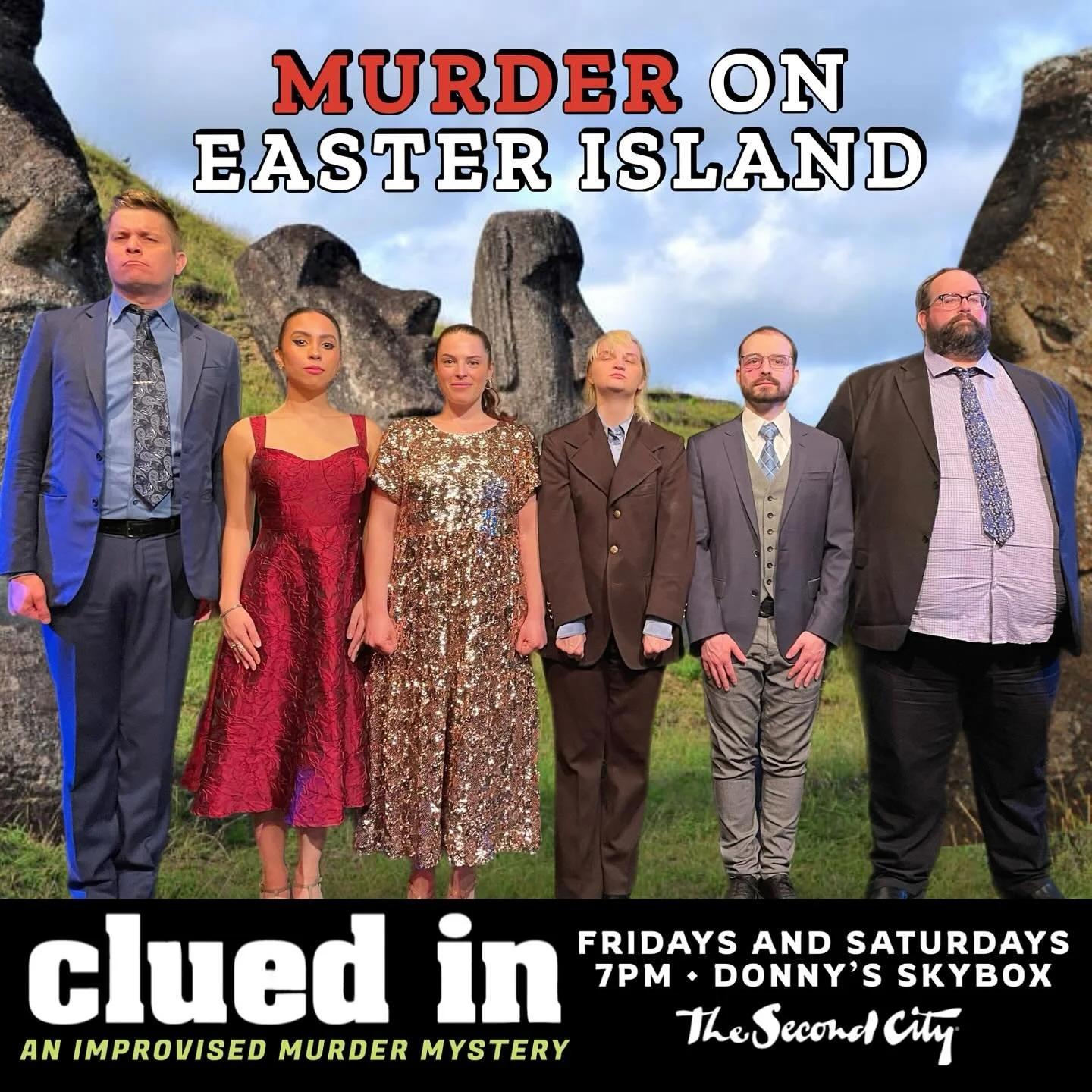 After getting a single suggestion, the cast of six professional comedians asks the audience to choose a detective. Enjoy as they invent a tale of crime, secrets, and scandals right before your eyes. The performers will keep track of facts, follow leads, and conclude who is the murderer, all while you take in a comedy experience unlike any you’ve seen before. During the show, they’ll employ the tropes, character archetypes, and influences of Hercule Poirot, Miss Marple, Sherlock Holmes, Nick and Nora Charles, Encyclopedia Brown, and just a dash of Scooby-Doo.